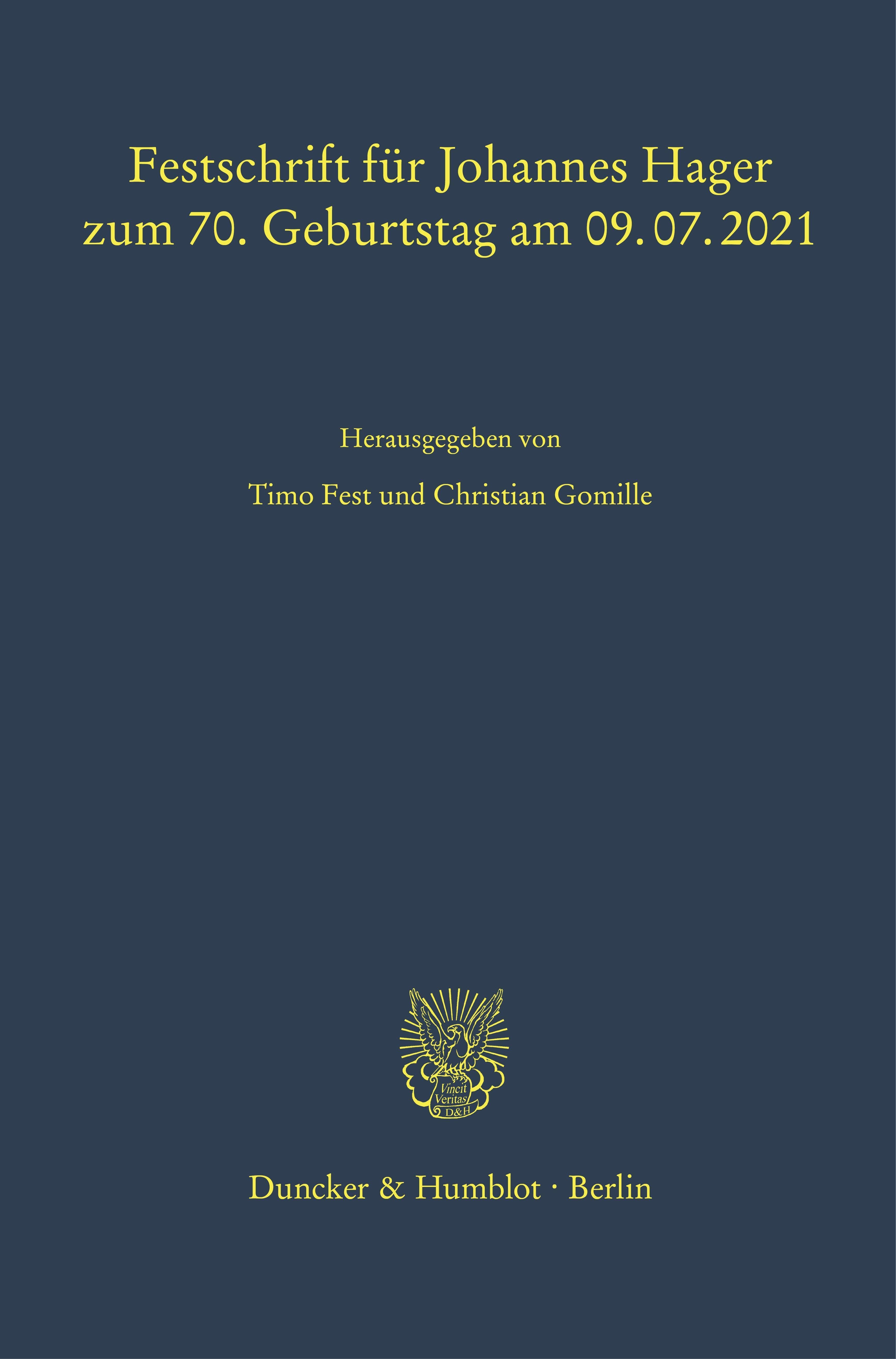 Festschrift für Johannes Hager zum 70. Geburtstag am 09.07.2021 (německy)