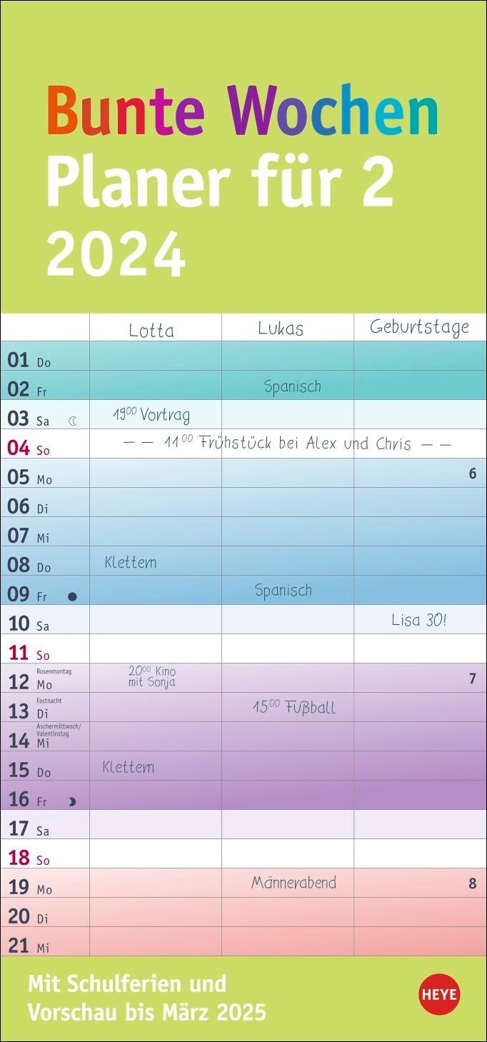 Bunte Wochen Planer für 2 2024 (německy)