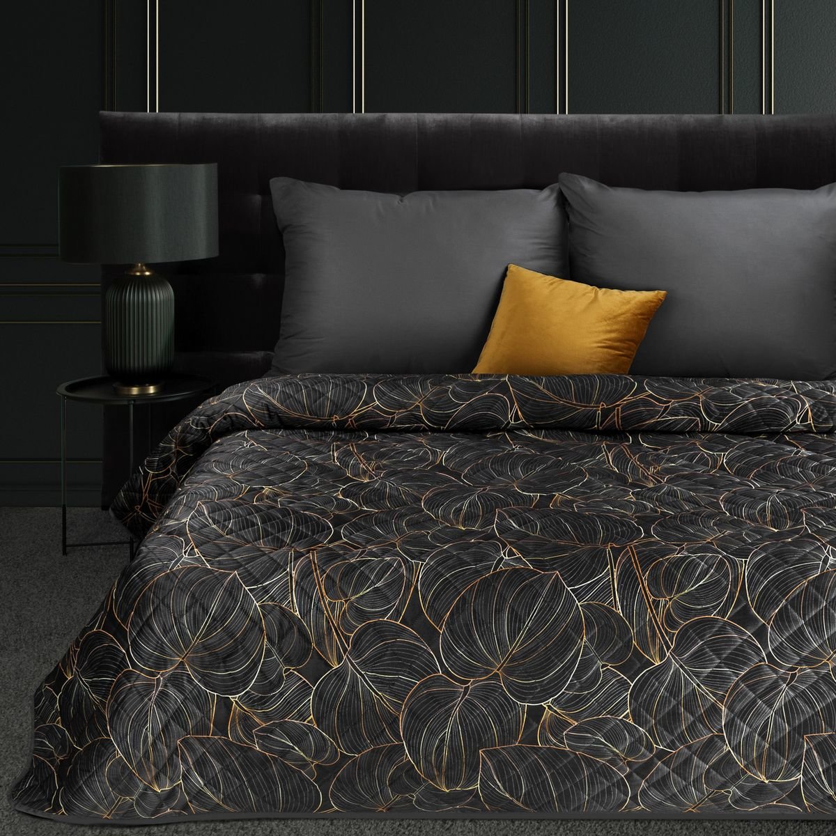 Přehoz na postel VIGO černá/zlatá 220x240 cm Mybesthome