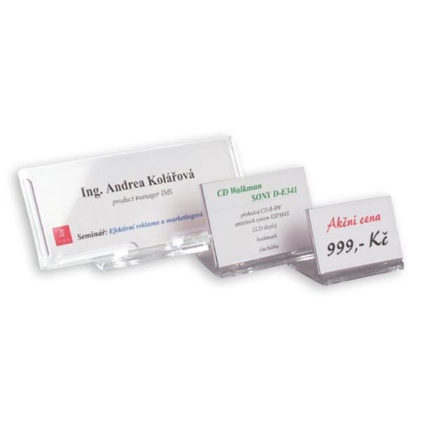 Tento praktický stolní identifikátor je vyroben z pevného, průhledného plastu, který je odolný a zároveň elegantní. Díky skládacímu podstavci ho snadno postavíte kamkoli potřebujete. Uvnitř stojánku je prostor pro čistou papírovou vložku, kterou můžete jednoduše doplnit vlastními texty, cenovkami, nápisy či popisky. Perfektní řešení pro obchody, výstavy, školení a další akce, kde je potřeba rychle a efektivně předat informace.