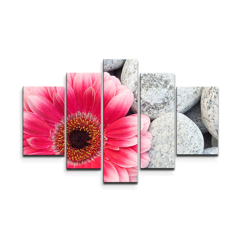Obraz - 5-dílný Gerbera na kamenech: 125x90 cm