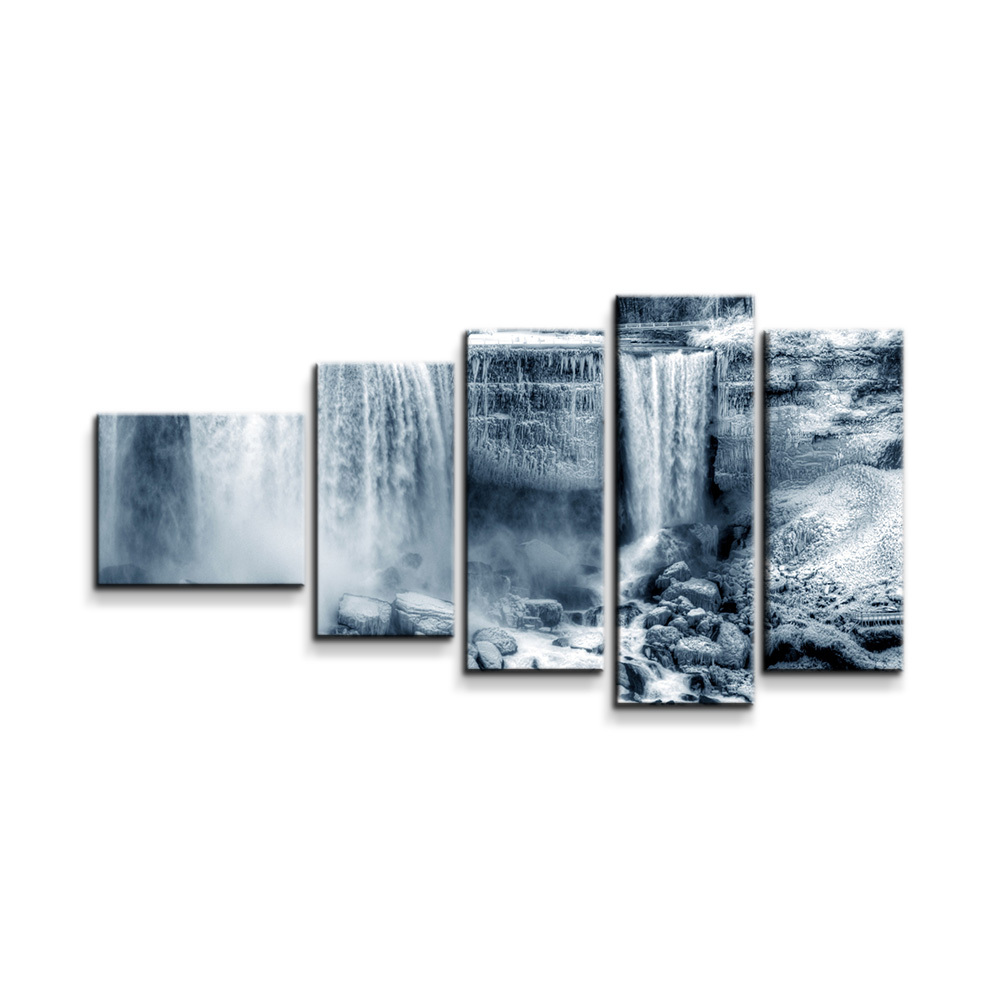 Obraz - 5-dílný Černobílý vodopád: 100x60 cm