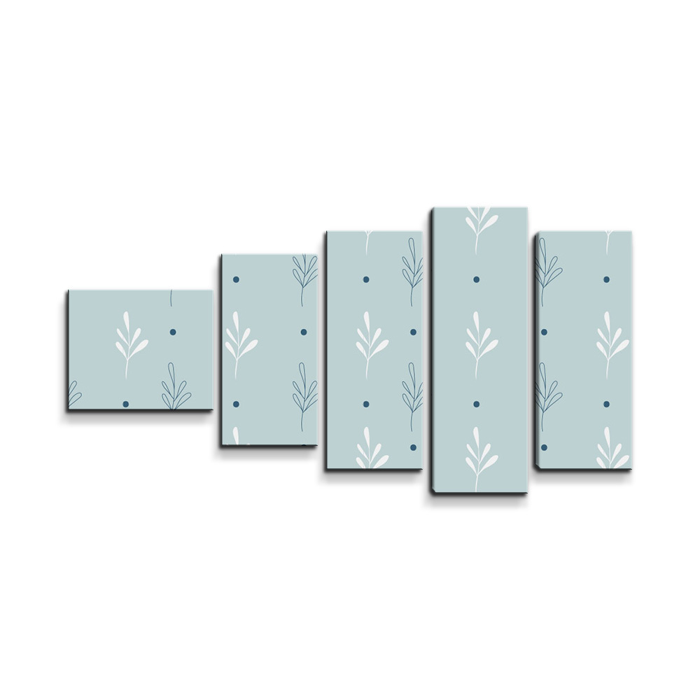Obraz - 5-dílný Modré a bílé lístky: 100x60 cm