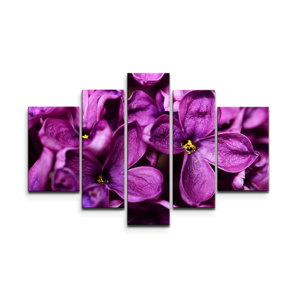 Obraz - 5-dílný Fialové květy: 125x90 cm