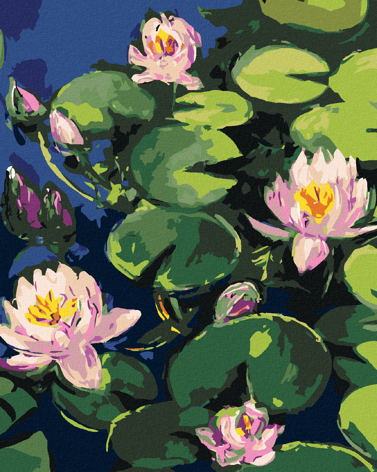 Malování podle čísel - LEKNÍNY V ZAHRADNÍM JEZEŘE - 80x100 cm, bez rámu a bez vypnutí plátna