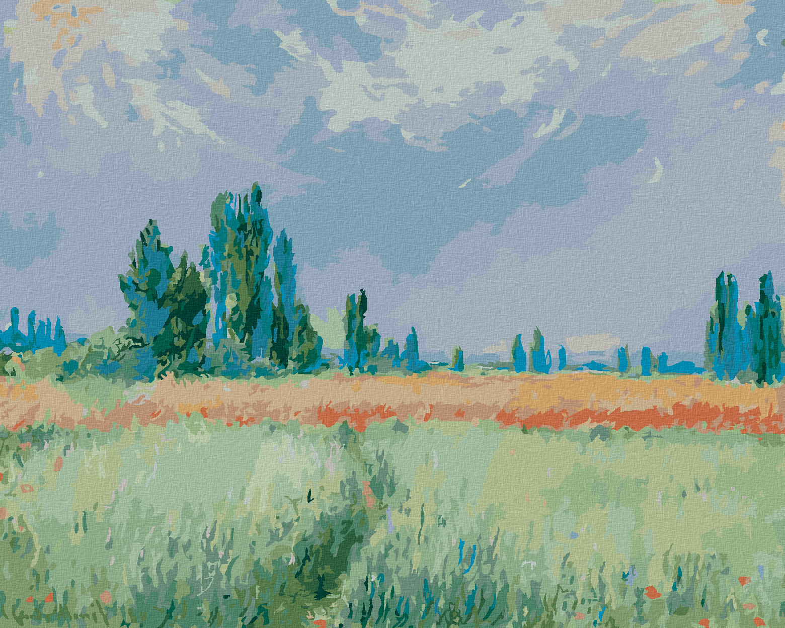 Malování podle čísel - PŠENIČNÉ POLE (CLAUDE MONET) - 40x50 cm, vypnuté plátno na rám