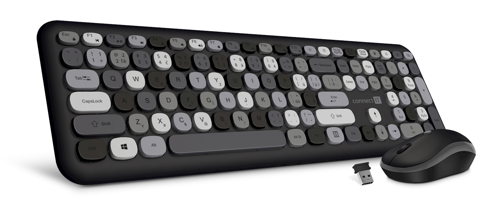 Set klávesnice + myš Connect IT FASHION combo bezdrátová černo-šedá (+1x AAA +1x AA baterie zdarma), CZ + SK layout