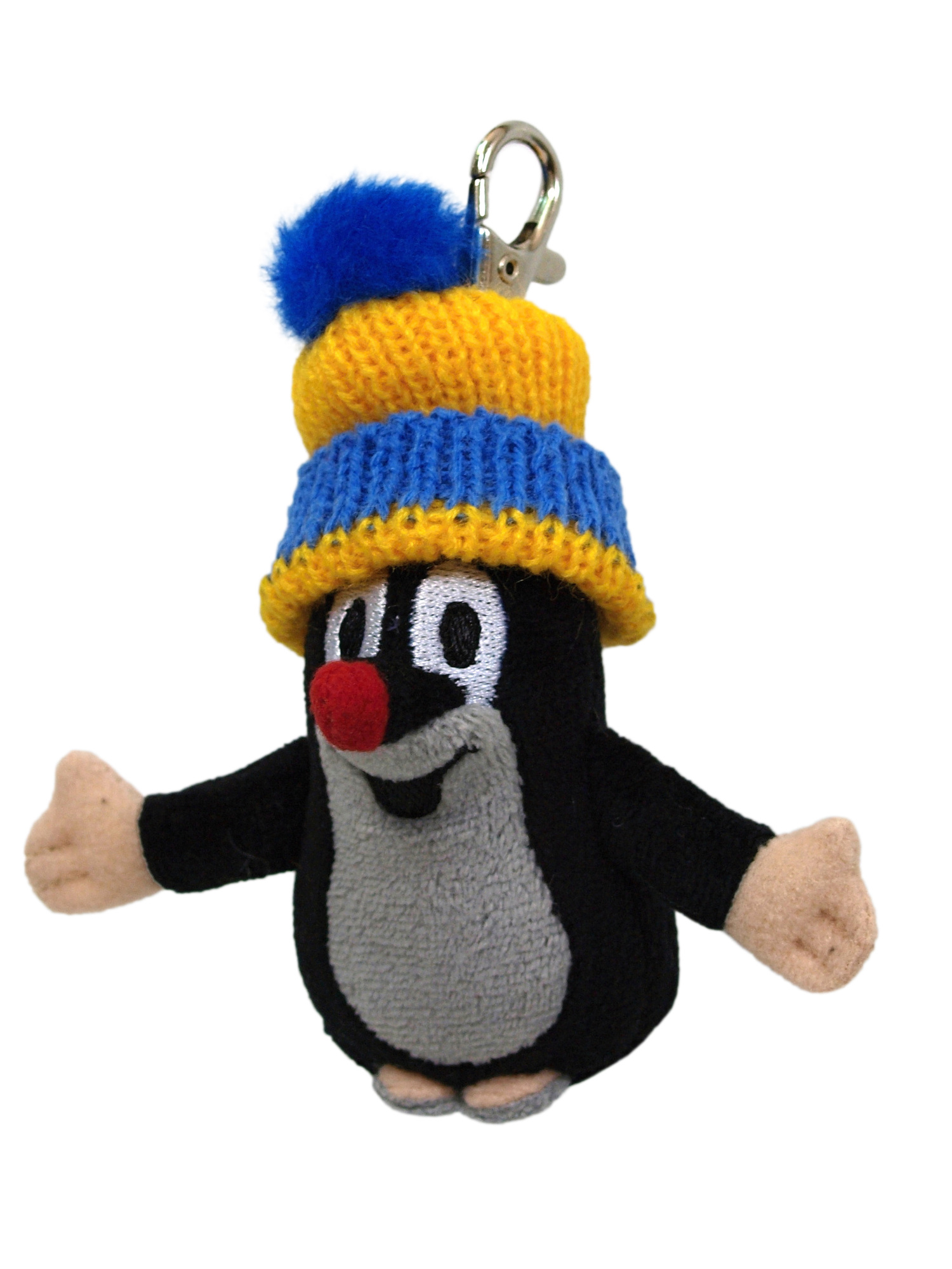 Krtek 10 cm, kulich modro-žlutý, plyšový přívěsek na karabince