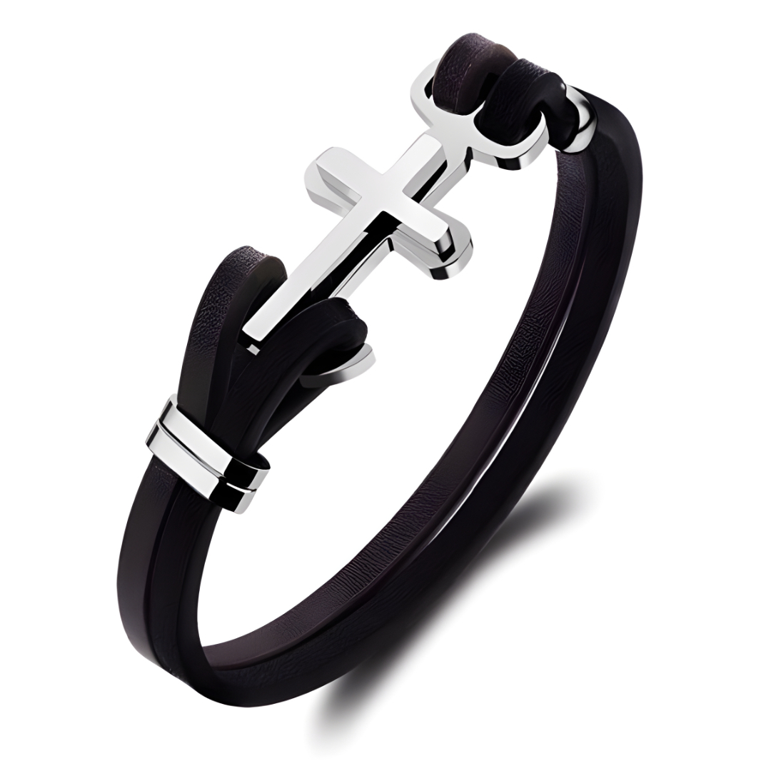 Nechte svou ruku zazářit propracovaným detailem kříže z nerezové oceli, který vyniká svou pevností a elegancí. Tato kombinace materiálů zaručuje dlouhou životnost a pohodlné nošení po celý den.