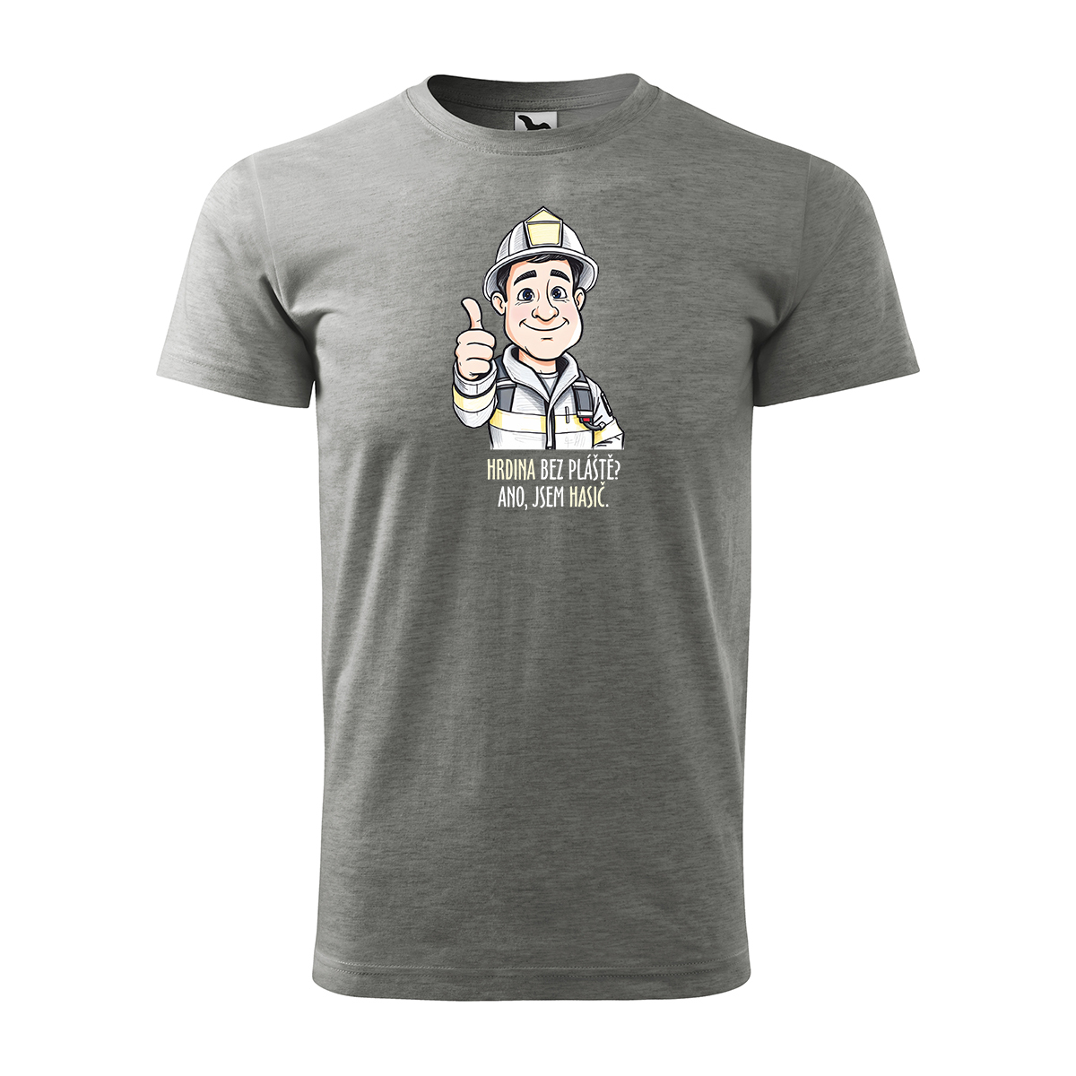 Tričko s potiskem pro hasiče Hrdina bez pláště? Ano, jsem hasič: šedé L