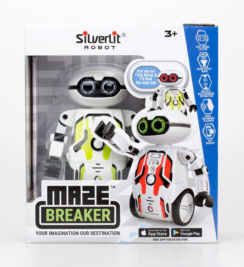 Maze Breaker to innowacyjny robot, który odnajduje drogę w labiryncie! Potrafi podążać za narysowaną czarną linią, pozostać wewnątrz zamkniętej pętli, a nawet tańczyć. Mów do niego, a Maze Breaker powtórzy Twoją wypowiedź głosem robota! Przekonaj się w jak różny sposób reaguje na sygnały...