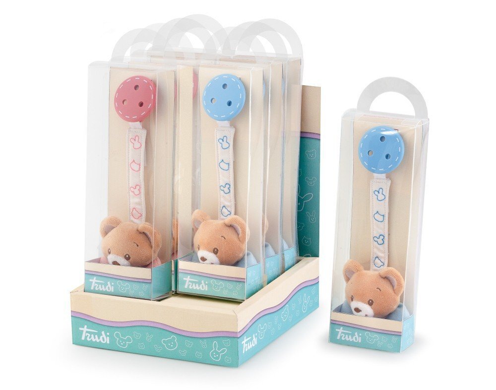 Łańcuszek do smoczka, miś, Baby Bear.Wymiary: 22 cmSeria Baby Bear to elegancka linia, charakteryzuje się wyjątkowo miękkimi elementami, delikatną kolorystyką. Linia Trudi - Baby Bear dostarcza wiele rozwiązań na wyjątkowy prezent. Seria uwielbiana przez mamusie, dedykowana dla niemowląt....