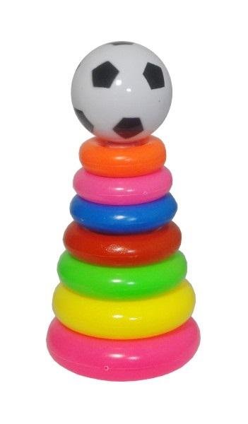 Wesoła, kolorowa plastikowa piramidka z piłką. Do sortowania i układania. #&Rozwija zdolności motoryczne i wzrokowe malucha.#&Dla dzieci powyżej 18 miesiąca życia.#&Zapakowana woreczek z siatki. číst celé