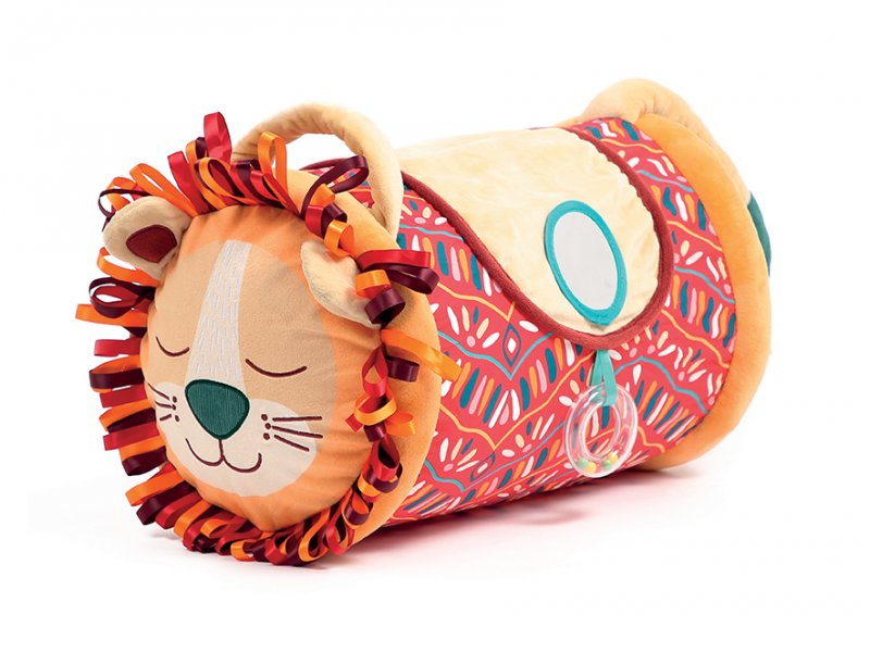 Originální hračka ve tvaru válce je plná zajímavých aktivit. Uvnitř naleznete cinkající míčky, které dítě motivují k pohybu a zkoumání. Textilní potah nabízí rozmanité textury, díky kterým si dítě může rozvíjet hmatové vnímání. Bezpečné zrcátko zaujme jeho pozornost a chrastítko přidá další podněty pro smysly. Díky nafukovací vnitřní části je válec velmi lehký, a tak si jej dítě snadno zvedne a přenese.