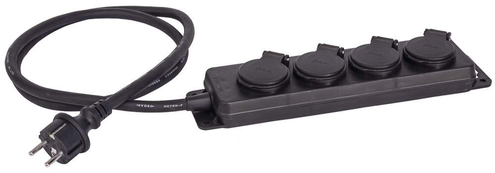Exteriérová zásuvková lišta 4x zásuvka na 230V / 50Hz. 1,5m dlouhý kabel - 3G2. Krytí IP44. Zásuvky s ochranným uzávěrem. číst celé