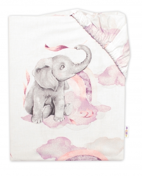 Dětské bavlněné prostěradlo do postýlky, Slon a duha, růžová/bílá, 140x70 cm; 140x70