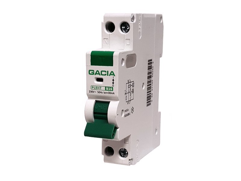 Proudový chránič GACIA PL8HT typ A /B25A/30mA/1P+N/6kA (s nadproudovou ochranou RCBO)