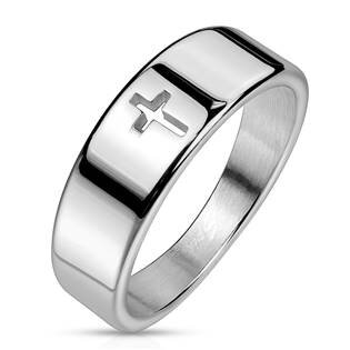 OPR0114-55 Ocelový prsten latinský kříž