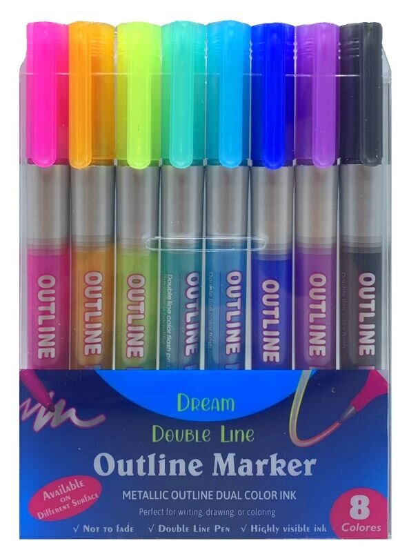 - Obsahuje 8 obrysových fixů v různých barvách.
