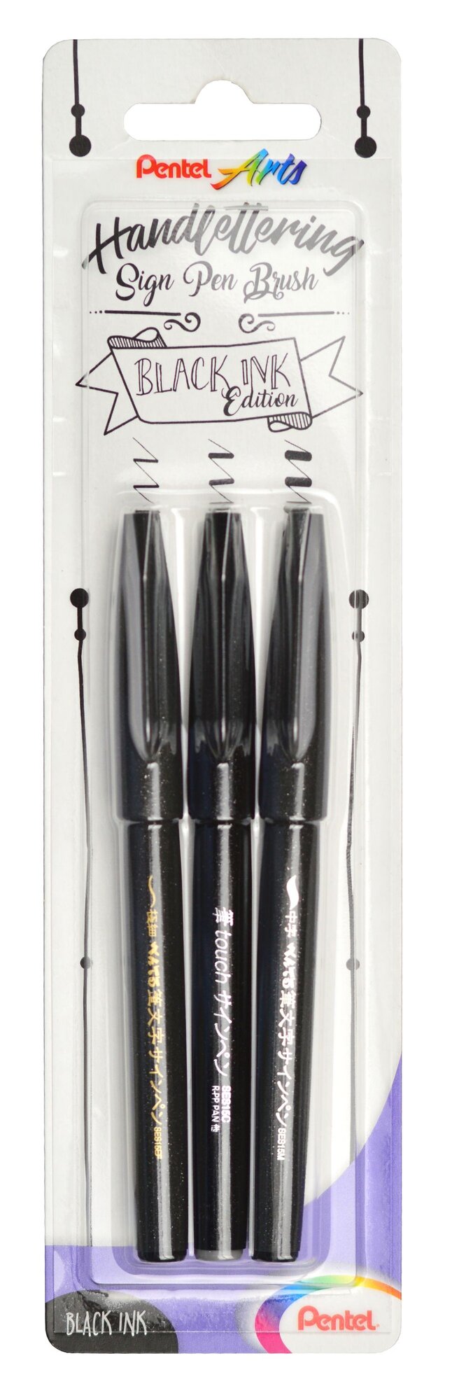 Pentel XSESP15-3 sada tří kusů permanentních popisovačů se štětečkovým hrotem v kovové objímce • 3 různé šíře stopy v černé barvě • flexibilní vlákna štětečku s proměnnou šířkou stopy od extra jemných po široké • označení síly štětce na těle popisovače • tři typy hrotů v sadě fine - tenký, medium...