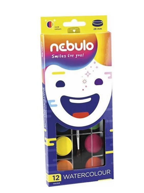 Farby akwarelowe 12 kolorów 28mm NEBULO