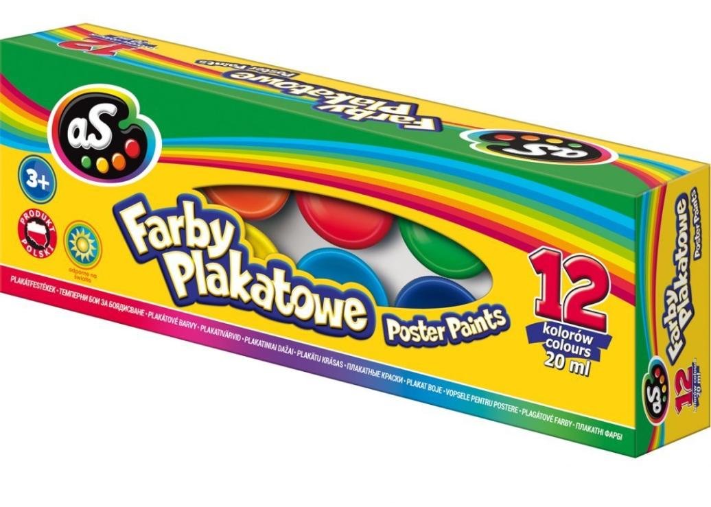 Farby plakatowe 12 kolorów 20ml AS