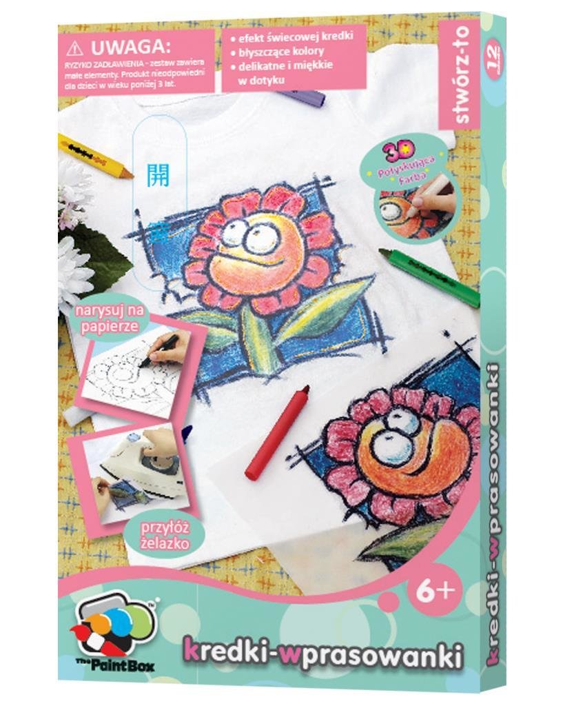 Kredki wprasowanki do tkanin w12 kolorach.Zawartość:12kredek wprasowanek1 brokatowa farba 3D1 instrukcja obslugi číst celé