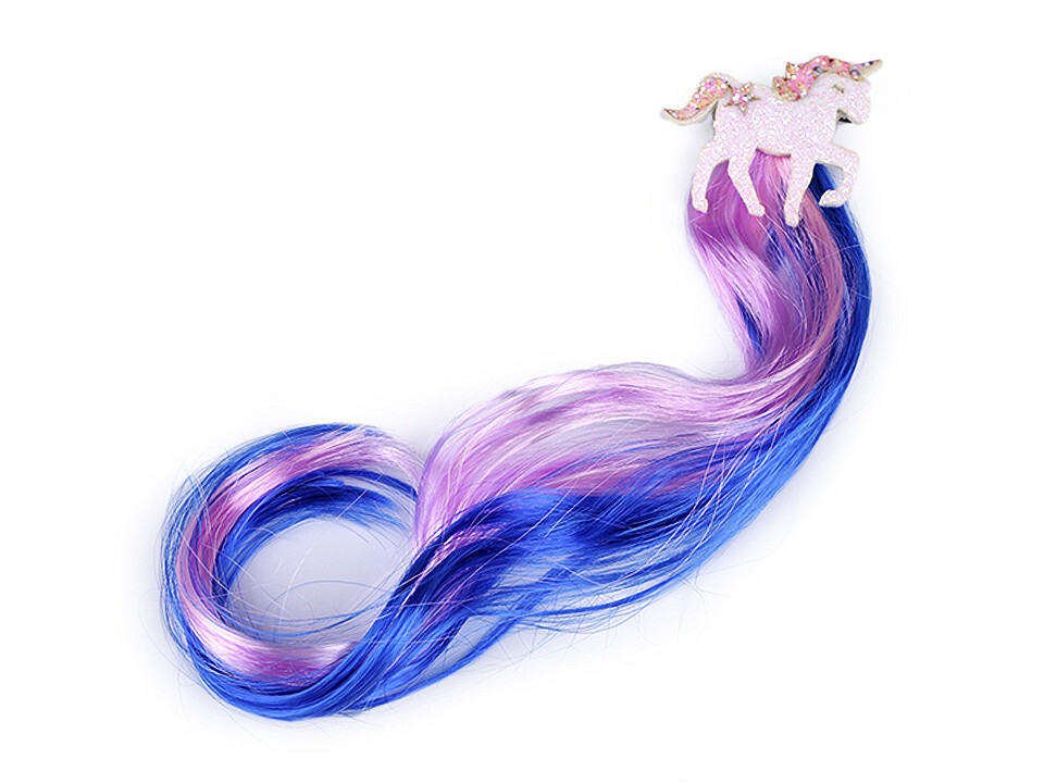 Pramínky vlasů se sponou jednorožec - 1 ks - 4 modrá královská fialová