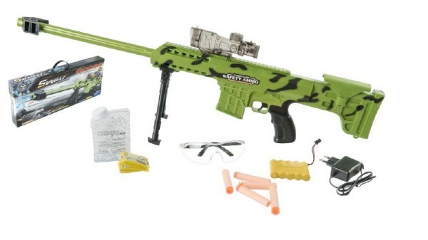 Puška plast 77cm na vodní kuličky odstřelovací na baterie v krabici 65x28x7cm