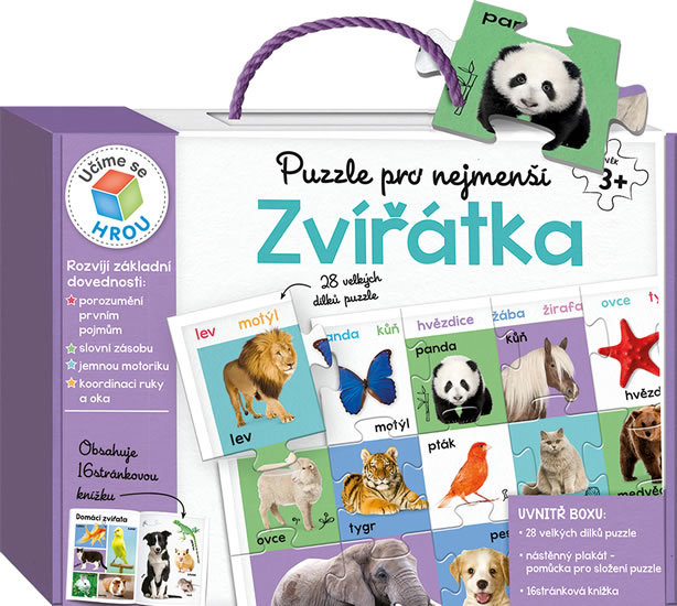Tematické kufříky-boxy, které obsahují 28 velkých dílů puzzle ideálních pro malé ruce, nástěnný plakát a 16stránkovou knížku, jsou určeny pro nejmenší děti od tří do pěti let. Skládáním puzzle s důvěrně známými obrázky se dítě učí prvnímu počítání, nazývá předměty každodenní potřeby a poznává...