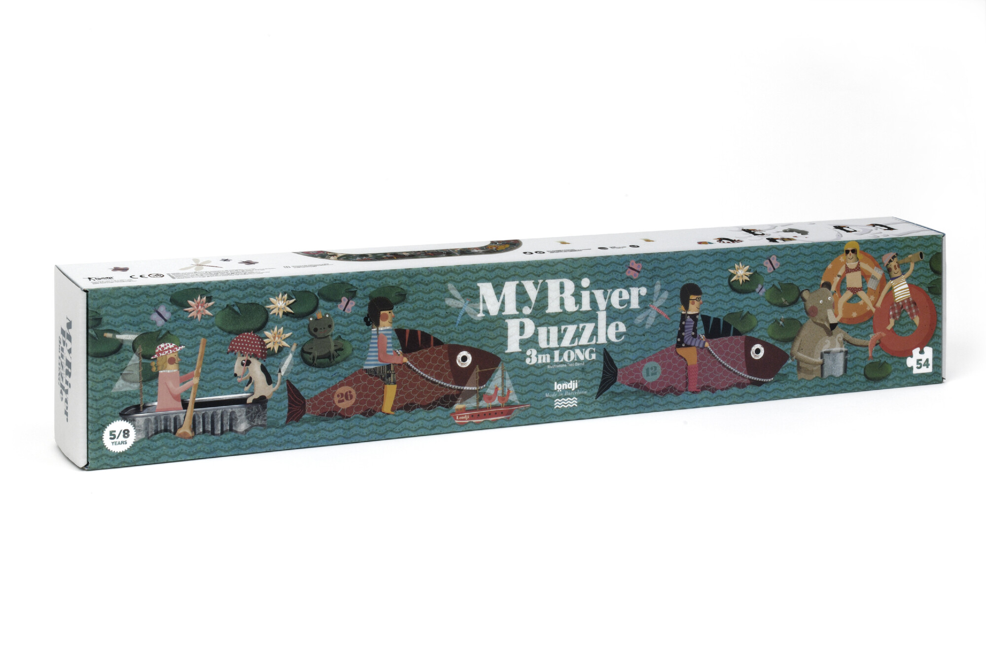 Tří metrové nádherné ilustrace, ze kterých vyskládáte řeku plnou prapodivných plavidel a veselých cestovatelů. Puzzle jsou vyrobeny z recyklovaného materiálu.Vhodné pro děti od 5 do 8 let. Rozměry balení: 70 x 12 x 6,5 cm. 54 dílků.My 3m River Puzzle // Londji original toys from Londji original... číst celé