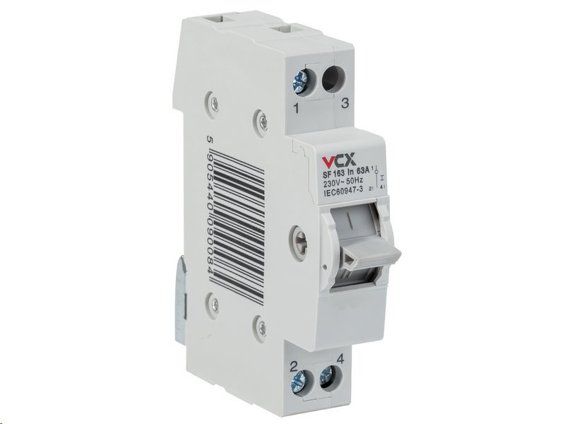 Instalační přepínač VCX SF163 je navržen pro efektivní výběr mezi primárním a nouzovým zdrojem energie, například mezi sítí a generátorem. Díky němu můžete snadno zajistit nepřetržitý provoz vašich elektrických zařízení bez obav z přerušení dodávky elektřiny. Tento jednopólový přepínač s jmenovitým proudem 63 A je určen pro montáž na standardní DIN lištu TH35 a nabízí ochranu třídy IP20, která zabezpečuje přístroj před mechanickými vlivy a dotykem elektrických částí.