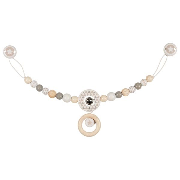 Dřevěný řetěz s rolničkami, kroužky a korálky je skvělá hračka k zabavení miminka v kočárku nebo v autosedačce. Neposedné perličky v kroužcích upoutají jeho pozornost. Díky rolničce, různým tvarům, kroužkům a pestrým barvičkám podporuje nejen vývoj jemné motoriky, rozeznávání rozličných forem a...