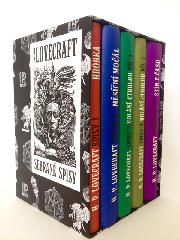 Toto souborné vydání zahrnuje kompletní čtyři díly Lovecraftových spisů rozdělených do pěti knih: Hrobka (příběhy a vize z let 1917-1920), Měsíční močál (příběhy a sny z let 1921-1925), Volání Cthulhu (příběhy a novely z let 1926-1930, ve dvou svazcích) a Stín z času (příběhy a střípky z let 1931-1935). Tento pečlivě vybraný výběr dokumentuje Lovecraftův literární vývoj a postupně vás zavede do jeho fascinujícího a děsivého světa plného nevysvětlitelných tajemství a nočních můr.