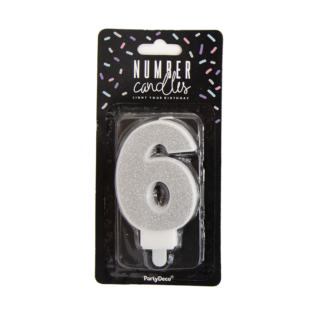 Svíčka dortová číslo 6 stříbrná 7 cm
