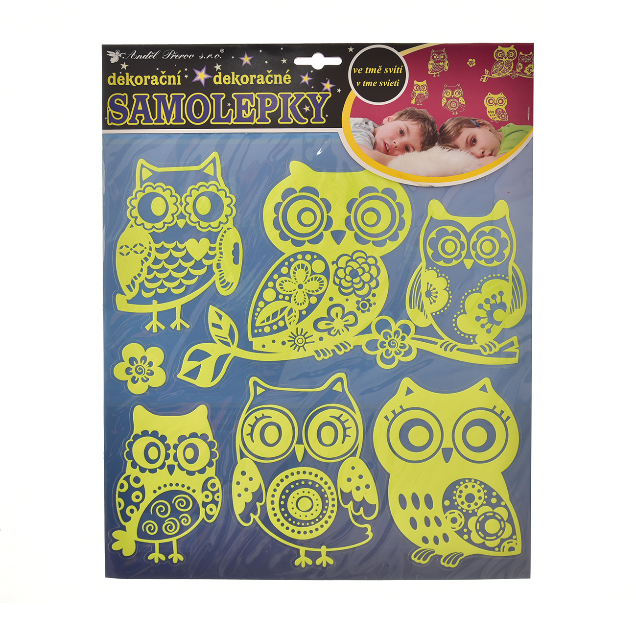 Samolepky na zeď sovy svítící ve tmě 32x31 cm