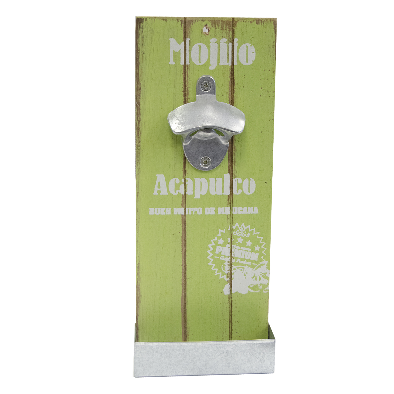 Otvírák lahví dřevo/plech na zeď 12x5x29 cm