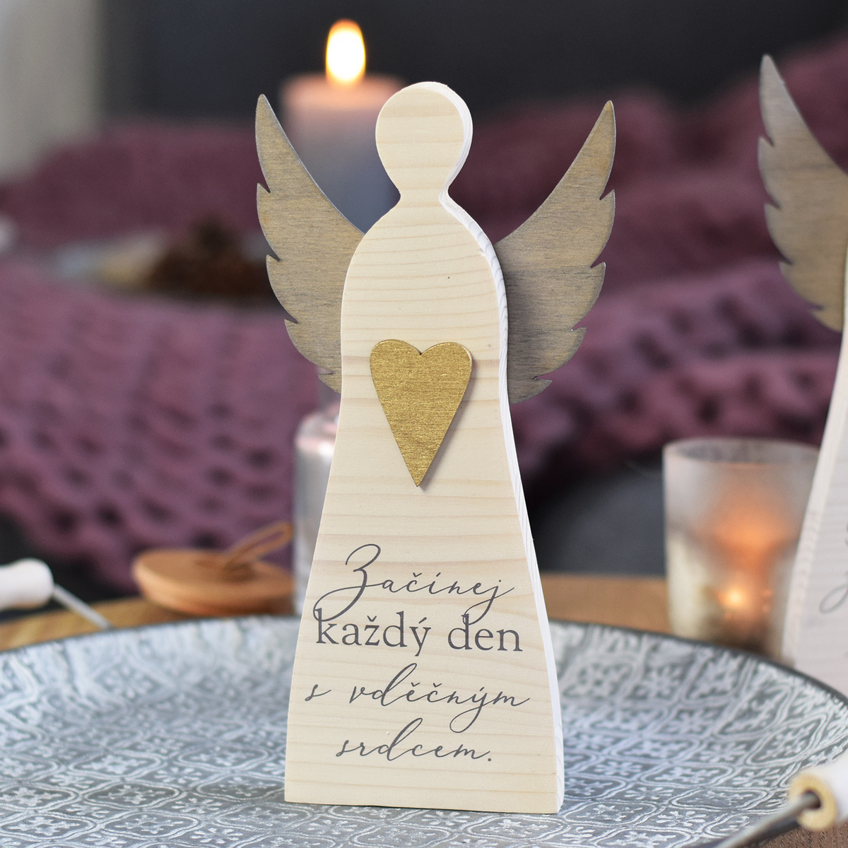 Kolekce dřevěných andělů s pečlivě vybranými citáty. Vyberte si citát, který je vašemu srdci nejblíž. Ať už si anděla postavíte na jakékoliv místo, bude Vám dělat radost svým moderním a přírodním zpracováním. Tělo anděla totiž tvoří masivní dřevo se světlým lazurováním, které jsme dotvořili... číst celé
