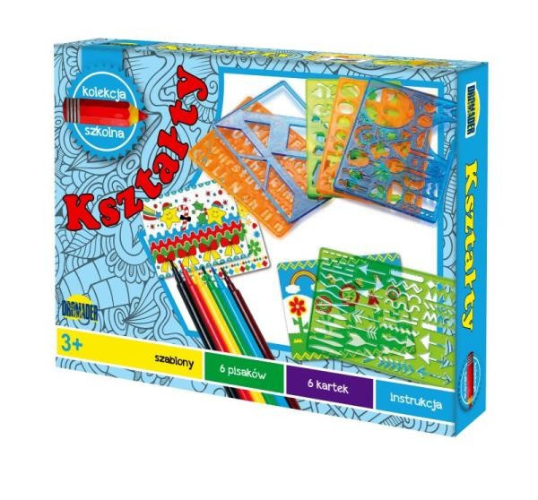 Zestaw do rysowania Szablony Kształty Dzięki różnorodnym szablonom, malowanie stanie się prawdziwą przyjemnością, rozwijając przy tym kreatywność i zdolności manualne najmłodszych. Szablony i pisaki w zestawie pozwolą na tworzenie niezwykłych dzieł sztuki, które będą dumą każdego dziecka. Zestaw...