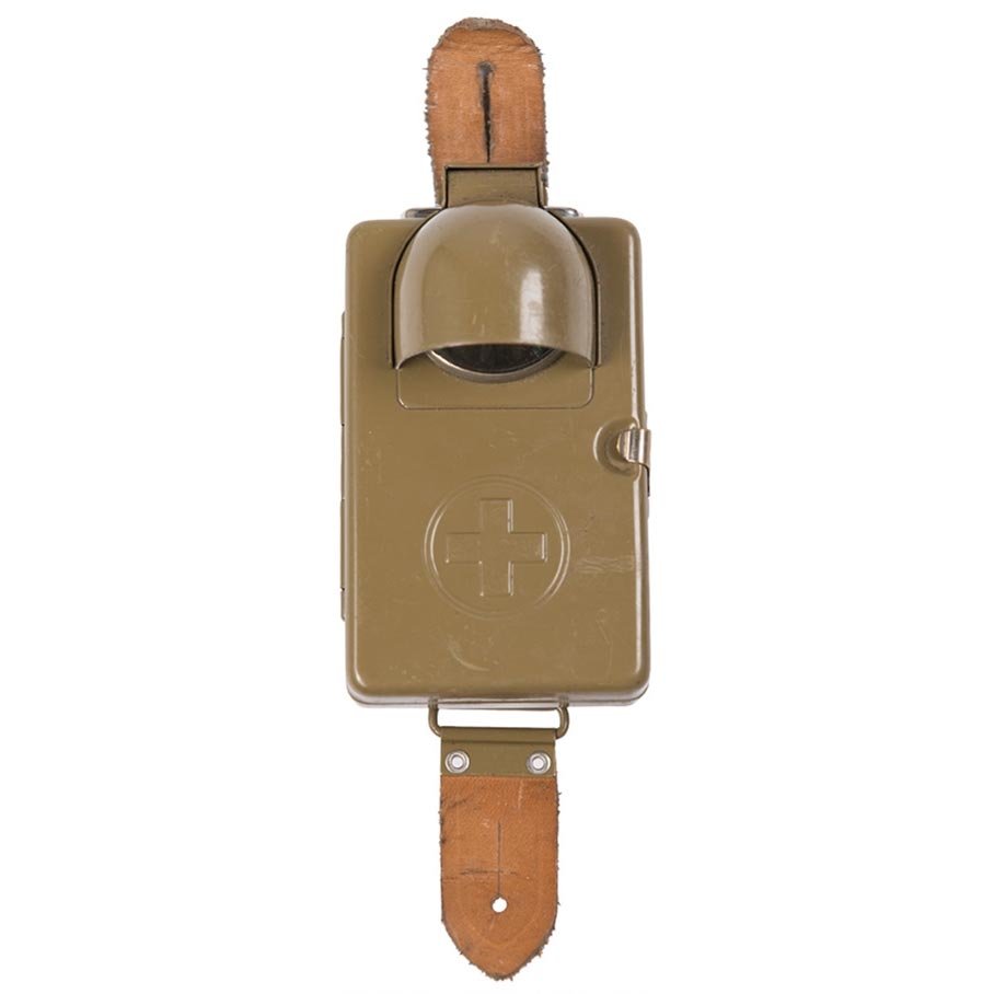 Stará vojenská plechová svítilna vyráběná pro švýcarskou armádu od 30-tých do 50-tých let. Napájení plocou baterií 4,5V. Klasická žárovka. Možnost vysílání morse. Kryt pro utlumení světla. Vzadu kožené poutko. Sběratelský kousek. číst celé