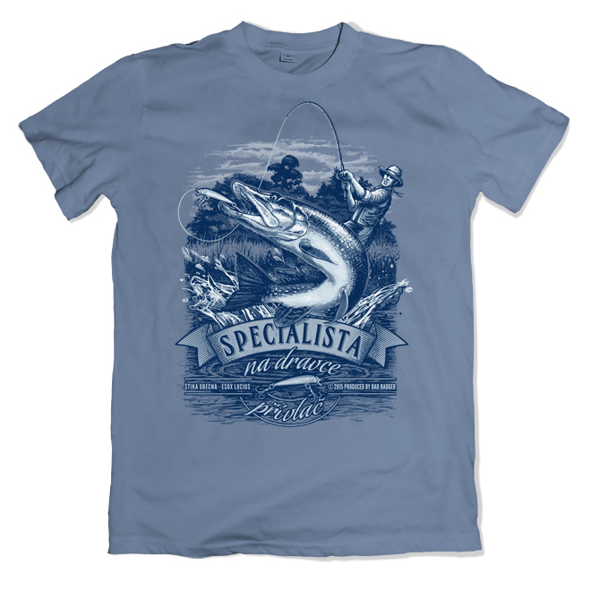 Triko rybářské Bad Badger Štika - modré, XXL
