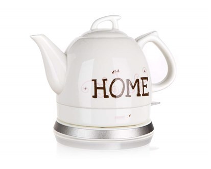 Keramická varná konvice s plochým dnem z nerezové oceli o objemu 1 l s dekorem HOME. Je opatřena základnou se středovým konektorem - 360 stupňů, ochranou proti přehřátí, má automatické / manuální vypnutí a světelný indikátor provozu.Parametry - provozní napětí (V/Hz): 220 - 240 / 50 - 60,...
