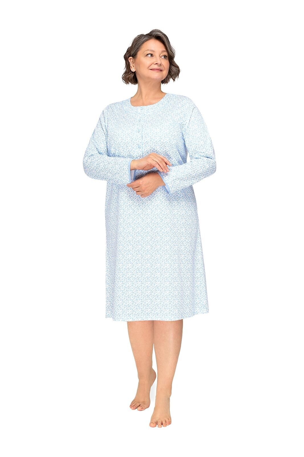 Koszula nocna- przyjemna, miękka bawełna- delikatny wzór- do połowy zapinana na guziczki- długi rękaw- długość za kolana číst celé