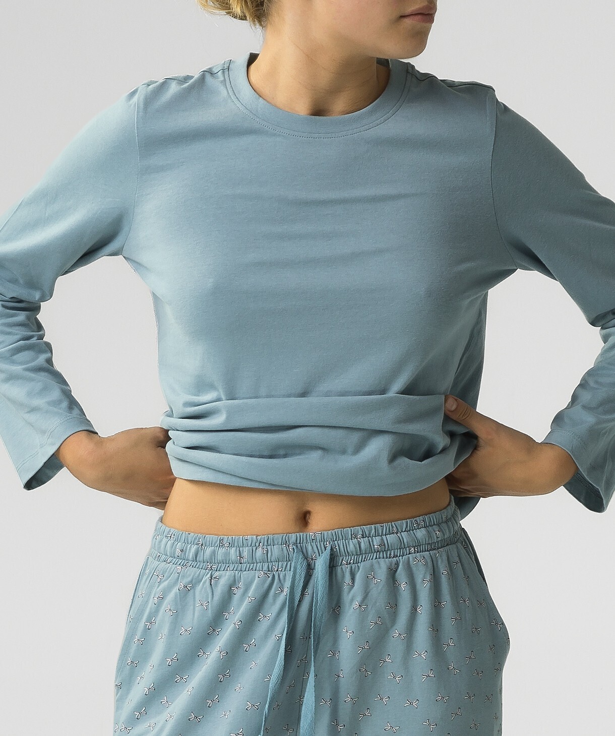 Piżama Atlantic NLP-483 dł/r S-2XL damska stalowy niebieski XXL