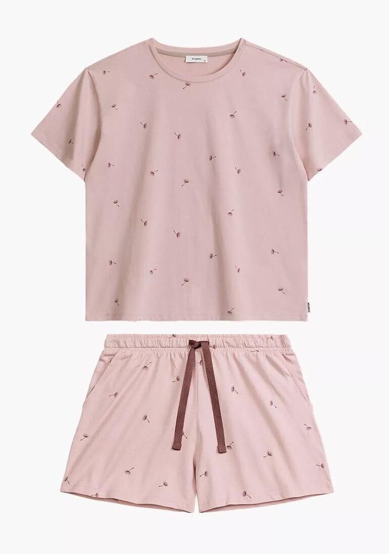 Letnia piżama damska- wysokiej jakości bawełna- delikatny print w dmuchawce- koszulka z krótkim rękawem- półokrągły dekolt- krótkie spodenki z kieszeniami- w pasie wiązany troczek do regulacji obwodu pasa číst celé