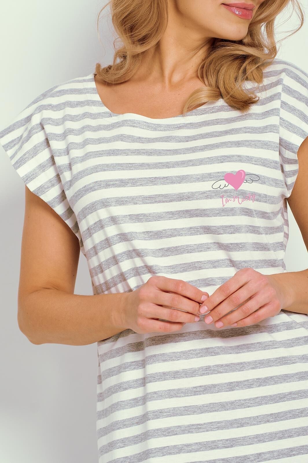 Letnia koszula damska- wysokiej jakości bawełna ozdobiona printem w paski- krótki rękaw- dekolt półokrągły- długość przed kolano číst celé
