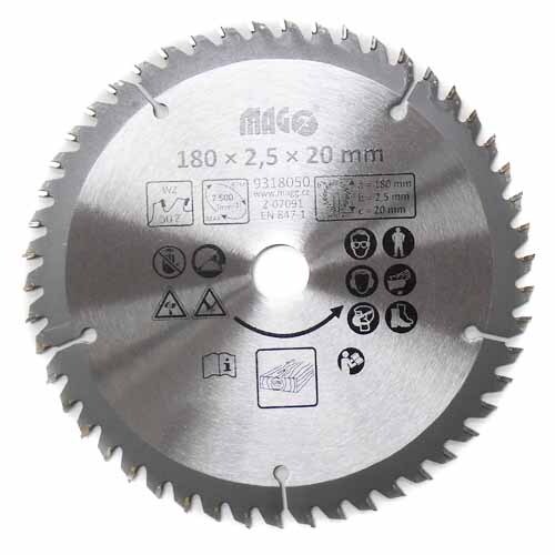 Technické specifikace:• průměr kotouče: 180 mm• průměr otvoru: 20 mm• šířka zubu: 2,5 mm• počet zubů: 50• tvar zubů: střídavě šikmý (WZ)Použití:• masiv• lamino číst celé