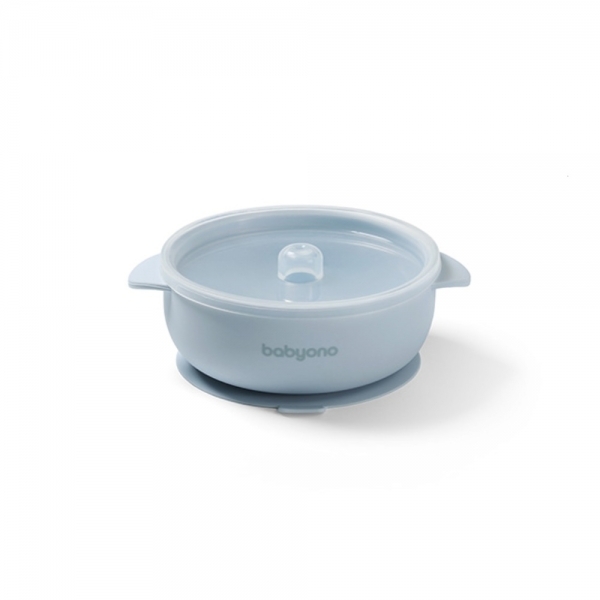 Silikonová miska s přísavkou a víčkem - modrá