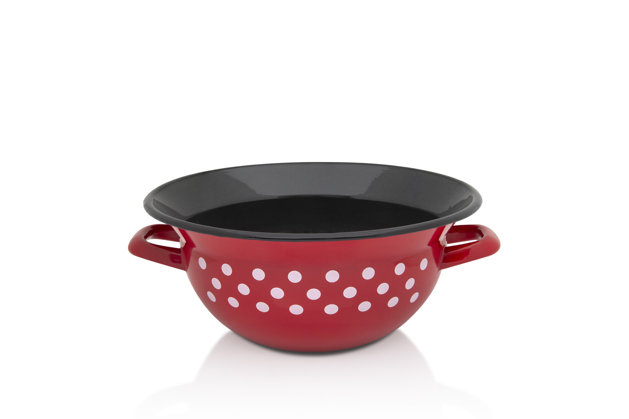 Metalac Červený puntík, smaltovaná mísa s uchy 28 cm, 5 l, černý vnitřek