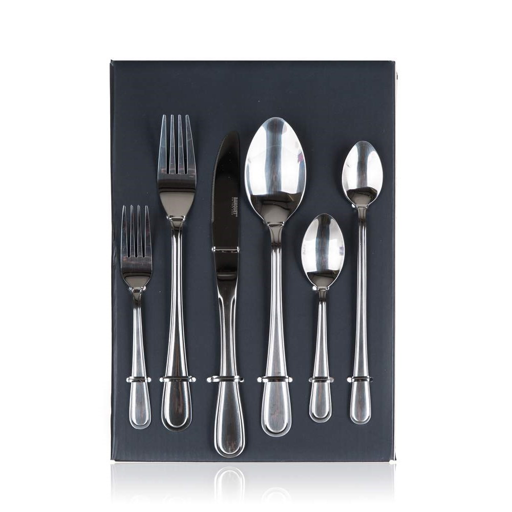 Sada nerezových příborů COSINO, 48 ks obsahuje 8x jídelní nůž, 8x jídelní vidličku, 8x jídelní lžíci, 8 x čajovou lžičku, 8x desertní vidličku, 8x latte lžičku. Materiál nerezová ocel 18/0.